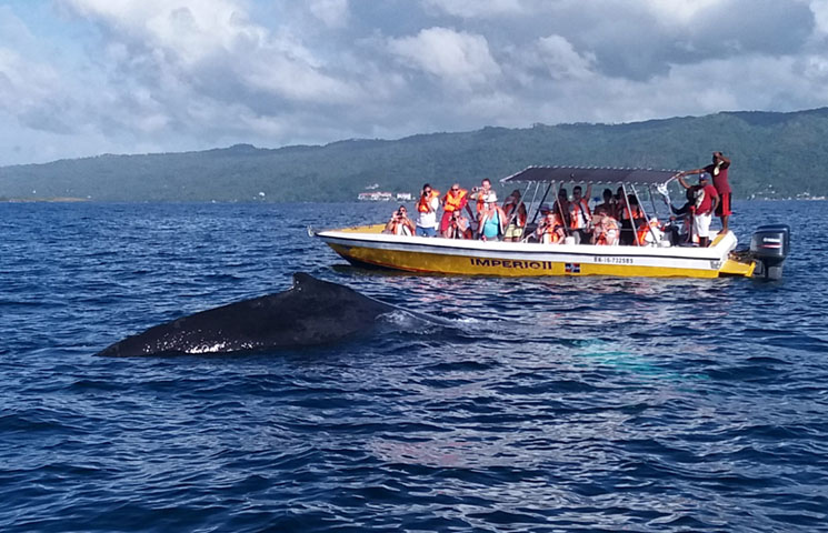 Von Mitte Januar bis Mitte April treffen sich die gewaltigen Buckelwale in der Bucht von Samana. Sie werden rund 15 Meter lang und 30 bis 40 Tonnen schwer. Die Buckelwale des Atlantiks schwimmen den langen Weg (5000 km) von den kalten arktischen Gewässern rund um Grönland und Island hierher, um zu flirten und für Nachwuchs zu sorgen. Die Bucht von Samana ist fast 70 km lang und zwischen 8 und 18 km breit. Das Wasser in der geschützten Bucht ist 12 bis 20 Meter tief und bietet den Riesen offenbar beste Voraussetzungen zur Paarung und Aufzucht ihrer Jungen.